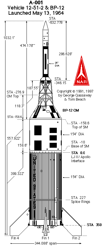 | Tom Beach and I produced a full set of scale data which was printed in the May/June and July/August 1991 issues of American Spacemodeling magazine. Wayne Hendricks and I worked on developing Little Joe models starting in late 1989, resulting in a model at a scale of 1/39.5. The models have flown at various regional meets, NARAMs, and three WSMC's. The COMPLETE American Spacemodeling Little Joe II drawings and written article are uploaded to the Files section of the "NARscale" Yahoo group. You have to join the group in order to access the files. |