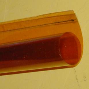 A suitable mandrel is needed for rolling the tube. For thisexample, the mandrel was some 30mm aluminum tubing from Andy Tomasch.That tubing is exactly 30mm O.D., assuring that the Kapton tube willmake the FAI minimum diameter by some margin for measurement error.The tubing might have a little flaring-out or burring where it wascut, use some 100-150 grit sandpaper or even a Dremel tool withcut-off wheel to sand or grind the tube to de-burr it and give it aslight rounding. This way the completed tube will slide off of themandrel more easily. This deburring step does not apply if using acustom made mandrel for making full FAI bodies.