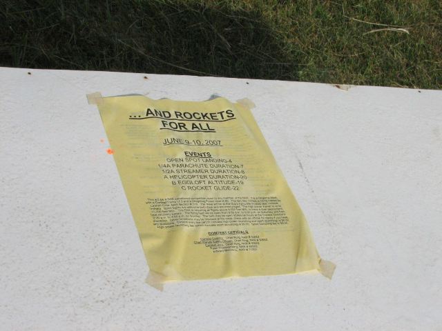 Events were: Open Spot Landing 1/4A Parachute Duration 1/2A Streamer Duration A Helicopter Duration B Eggloft Altitude C Rocket Glide