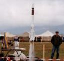 | Ellis Langford's clustered Ariane launch! | Bob Biedron's Ariane Launch Click here for close-up (Andy Tomasch Photo) | Jay Marsh (in white jacket) launches his Saturn-IB for its 2nd flight | |