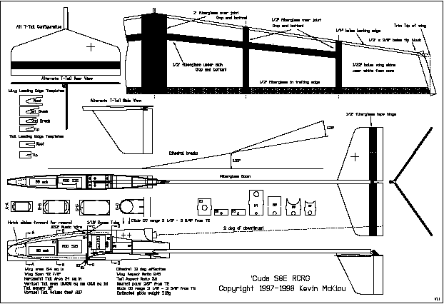 |   | Kevin McKiou created the excellent Stingray all-composite S8E model for use at the FAI WSMC level. He later also created the Cuda R/C R/G, as an easier and much less expensive design using balsa skinned foam core wings and laser-cut balsa parts. He created a small company called VectorAero to sell them. Unfortunately, Kevin shut down "VectorAero" several years back. Here is a link to an ARCHIVE of VectorAero on the Internet Archive. | The Cuda files and plans are presented with the following provision by designer Kevin McKiou: "I have no problem making any of this stuff public. In fact, the more people have the information, the more likely it is to live on. I think the only caveat I would place on it is that if anybody uses any of the design information - even if they change it - they must make their work "open source" and available free to the public. This would be like a GNU open source software license. This would not prevent anyone from making kits, but if anyone uses Cuda designs as the basis for a kit of a new design, they must make their design and documentation available free to the public. The same with the airfoils." | Cuda Instruction Manual as PDF file. KM7 Airfoil Coordinates. Cuda Plans as GIF File Cuda Plans as PDF File Cuda Plans as HPGL File Cuda Plans as a DXF File, Zipped More to come later. |  Kevin (left) flying his Stingray in S8E at the 1996 WSMC in Slovenia  Kevin was on the US Team that took the Team Silver Medal at the 1996 WSMC |