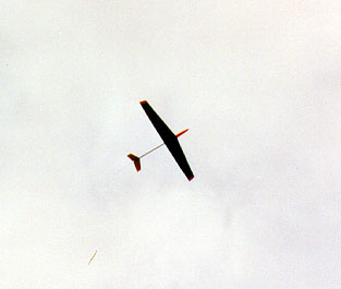 ![]() George's Cuda-Flap in foreground. Moonraker built by Ed LaCroix, bought by Kevin Creamer, in background | ![]() Roger Wilfong and George putting their Cudas into the Towers | ![]() George's Cuda-Flap S8E-P practice landing, with Mark Bundick |
