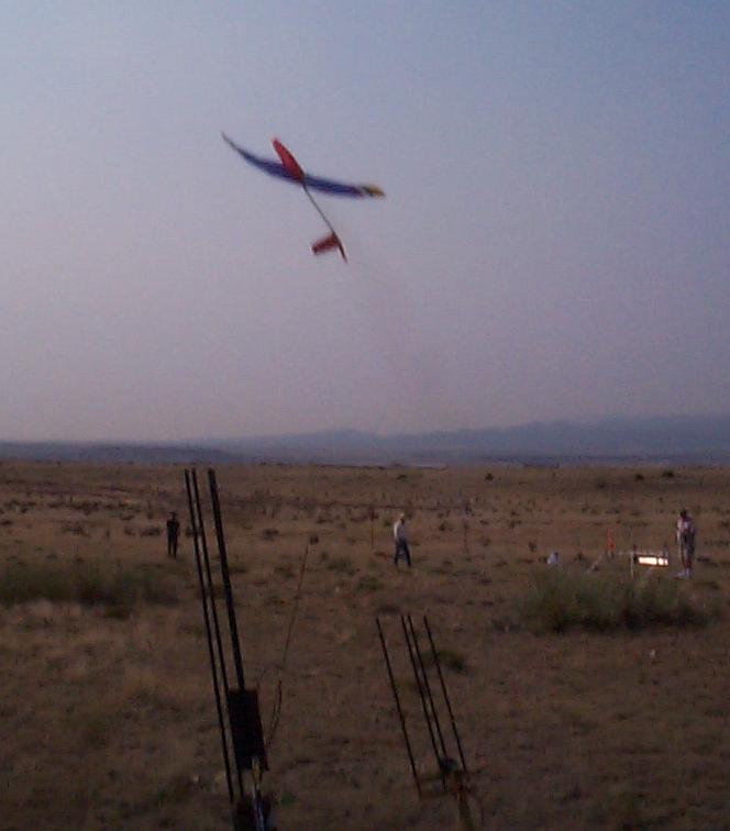 ![]() Chinese Junior S8D Team at 2000 WSMC with upright V-tails | ![]() George's S8E-P Cuda-Flap (2001) with Video Camera Pod (2005) | ![]() Chad Ring's Cuda Light shredded on a test boost, was rebuilt, and went on to win big in C Division D B/G at NARAM-50 |
