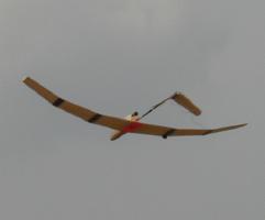 ![]() Cuda Ray Servos in wing, Batt. & Rec. in 24mm pod. | ![]() Ryan's Cuda-Ray with Flaps down | ![]() Yellow Runway Tape |
