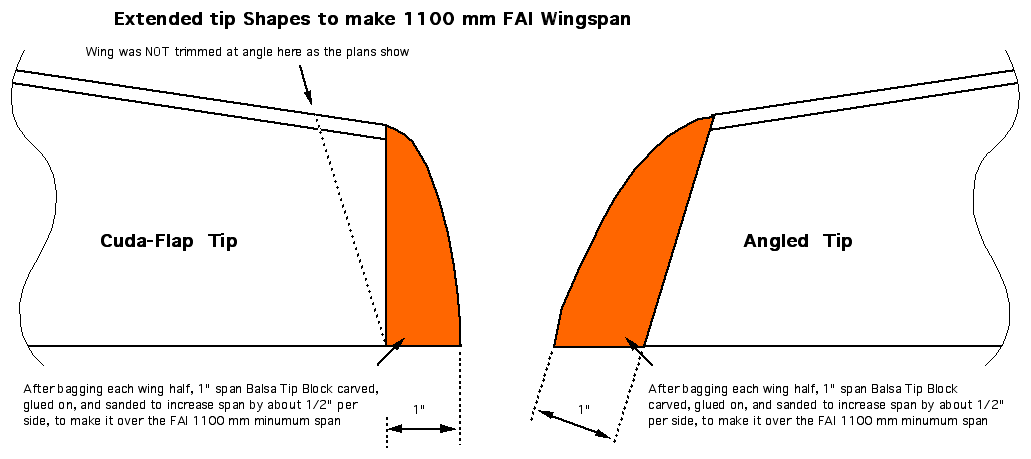 | Wing Assembly If you have never made wings using balsa skins and foam cores before, you should really study all of the wing assembly steps of the Cuda Manual thoroughly before you start. Do not sand the balsa skins thin to save mass. A few people have had their wings fail on boost, and almost always it has involved models where the 1/32" skins were sanded thinner, and/or they forgot to add the fiberglass reinforcing cloth inside to act like a spar. When you have the 1/32 balsa wing skins glue together and cut out, mark off the locations (inside the skins) for the fiberglass "Spar", and for the fiberglass to be applied to the trailing edge to strengthen it. Also use a magic marker to color the last 1/2" of the trailing edge area. This is so that much later, when the trailing edge is sanded, you will be able to see your progress. In the photo are right, I was preparing for a unique "Cuda-Flap" model, I cut out a slot for a shaped balsa insert to go into the foam core, to act as a rear spar and reinforcement when I later cut out the flap. I only mention this to explain why the photo at right is a bit unique, a normal Cuda wing would not have that. The "R" on the core means that is the core for the right wing, top side up. The "RB" on the balsa skin means it is the Right Bottom wingskin. | |