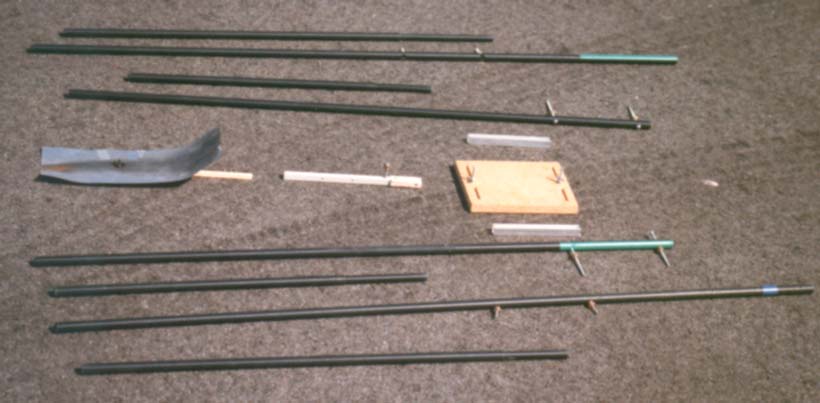 The tower rails were adopted from ones that had already been used by other U.S. member for their R/C R/G towers and Contest Model towers. Rails made of .505" fiberglass tubing, with joiners made of .414" fiberglass tubing. It is surprising the number of people who have seen those black resin fiberglass rails and assumed those were highly expensive graphite tubes.