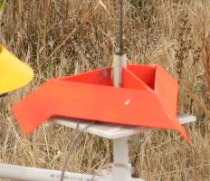 Tri-F-O © copyright 1996, 2004 by George Gassaway & the NAR Commercial rights reserved The name Tri-F-O stands for Triangular "UFO". This model is a relatively easy to build balsa model which flies somewhat similarly to the circular cardstock Flying Saucer introduced by Centuri in 1977 and also in plastic from by Estes years later. The model is primarily built from 3/32" balsa. Non-wood parts required are one 2" length of 18mm tube for the engine mount, an engine block, and a launch lug for flying off 1/8" launch rods. The plan shows full size templates for the struts and spin tab joint reinforcements, photocopy them so as not to cut into the magazine to use them. Due to space limitations the triangular body side and spin tab shapes are shown 1/2 size, but those are easy to draw out. Cut out all parts, being careful that the wood grain runs in the right direction. Prepare the wood parts by sanding the leading and trailing edges of the struts, the leading edges of the side plates for the triangular body, as well as the trailing edges of the spin tabs. Sand the 45 degree diagonal edges of the side plates to a bevel of about 45 degrees, so the joints will match up well when the three side plates are glued together. Finish: If you want to have a smooth finish on the model, it needs to be done before assembly as most of the balsa surfaces cannot be easily reached by sandpaper after assembly. A coat or two of sanding sealer is all that's needed for a somewhat reasonable finish. However, the prototype had no sealer, it was sanded smooth then after assembly sprayed flat white for an undercoat and fluorescent orange for the final color. Assembly: Use tape to hold the edges of the side plates together, to create the triangular body. The tape should go across the top of the corners, and the placement adjusted so that the three side plates are held aligned in the proper position for gluing. Use thin Cyanoacrylate glue (CA) along the inside of the corners (opposite of the side with the tape) to tack-glue the side plates together. After the CA has cured, remove the tape, careful not to pop the tack-glued joints loose. Than use more CA along the inside of the joints for a solid bond. Be careful not to use so much CA that it runs. After the CA is cured, use sandpaper to round off the sharp outer corners of the joints. Use the guide in the plan to mark onto the engine tube the location for the 3 struts. Use a door jamb as a guide to redraw those marks into parallel lines for the strut roots. Insert a standard size 18mm engine into the engine tube, using tape for a friction fit so the engine top is flush with the top of the engine tube. This should leave exactly 3/4 of the engine protruding down from the tube. Place this on a flat surface. Hold one of the struts in position alongside the motor tube, with the trailing edge of the strut root even with the bottom of the motor tube. The tip of the strut should just barely touch the building surface, as the strut has 3/4" sweepback. Apply a little CA to tack-glue the strut into place on the engine tube, being careful not to let the CA run to accidentally glue the engine into the tube. Repeat with the other two struts. Remove the engine. Since the struts may not be exactly 120 degrees apart, lay the strut/tube assembly upside down into the triangular body assembly (also inverted). With the strut/tube assembly centered, carefully pry the struts if necessary to get them seated into the inner corners of the triangular body. Then apply CA for the root edges of the struts, along the tube, to permanently glue the struts to the tube (do not glue to the triangular body yet). Insert the engine back into the engine mount tube, leaving it hanging out by about 1.5", with a slip-fit that is not too tight or too loose. Set the strut/mount assembly onto a flat surface, with protruding engine holding the assembly above the work surface. Carefully slip the triangular body down over the strut tips, keeping it centered. Press so that the engine tube/strut assembly also slides down the engine, until the triangular body touches the flat surface. If you have done this right, the engine bottom is still flat to the work surface, assuring the engine tube is properly aligned. If not, repeat the process to get it right. When you're sure it is aligned, apply some drops of CA to the strut tips to tack glue them to the inner corner joints of the triangular body. After curing, lift off the model from the surface and apply more CA to make the strut tip to body joints permanent. To help even out any errors in alignment, as well as add some extra flair to the flying, the model uses spin tabs which also look like landing pads (OK, sort of...). Making sure the spin tab grain is in the correct direction, glue the spin tab root directly to the trailing edge of the side plate, so that the tab is the same angle as the side plate. Make sure all three tabs are located to the same corners in order to produce the desired spin. The prototype had a problem with spin tabs getting broken in transport, so the plan shows a 1/2" wide reinforcement strip. The reinforcement can be 1/32" plywood, or 1/16 to 3/32" balsa. Glue the reinforcement strip to the underside, half of it across the spin tab root and half across the side plate, as shown in the bottom view. Remove the engine from the tube, and glue in an engine block (or 1/8" tall piece of burned out casing acting as an engine block). Glue a launch lug to the engine tube, at the root of one of the struts. The model is now complete, other than adding a final finish. Color as desired Intended engine power is B6-0 and C6-0. B6-2 or C6-3 engines are not recommended due to the potential to eject too close to the ground. Tape the motor in for a friction fit. When flown the model will climb to about 100 feet on a C6 motor, spinning slowly. When the motor burns out, the model will come to a stop almost immediately, then flip over and descend while rotating. Due to th