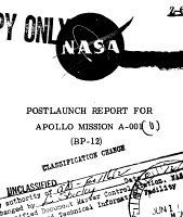 | A-001 / BP-12 Post-Launch Report for Apollo Mission A-001 (BP-12) May 28, 1964 MSC-R-A-64-1 #1979076675 309 page PDF File (68.1 MB) |