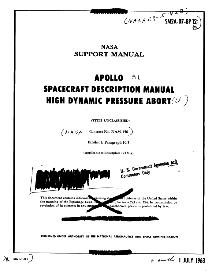| BP-12 (A-001) Apollo spacecraft description manual high dynamic pressure abort (using Little Joe II)