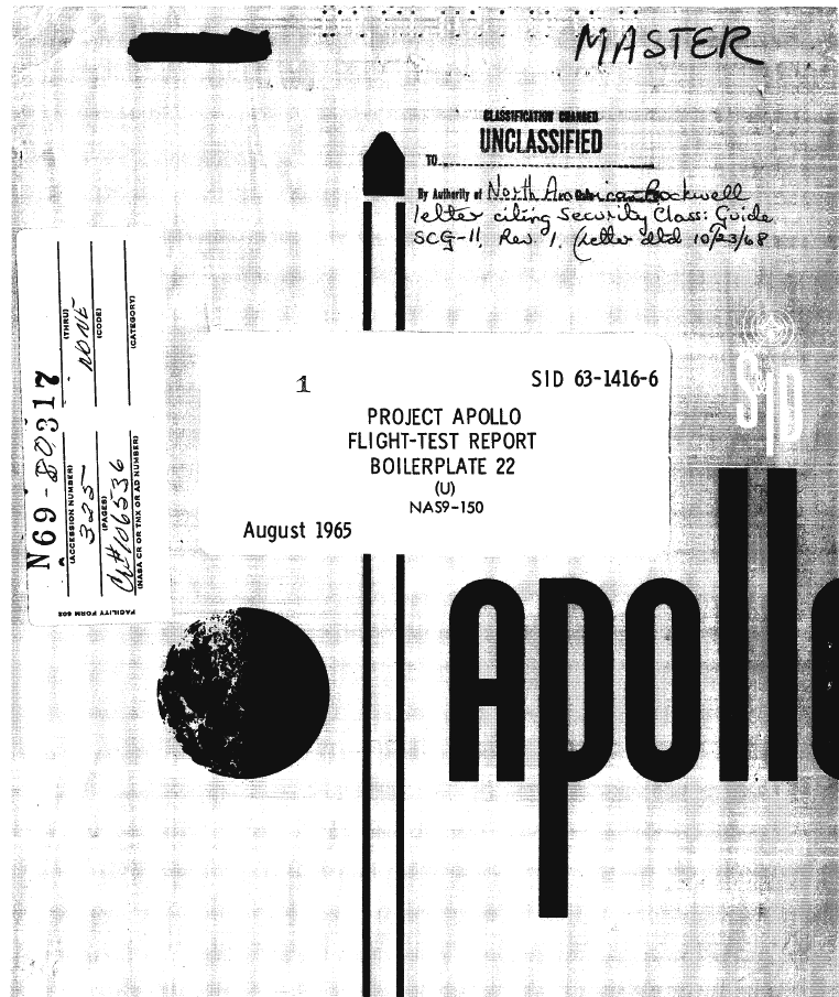 | BP-22 (A-003) Project Apollo Flight Test Report Boiletplate 22 NAS9-150 #1969076138 325 page PDF File (62.8 MB) |