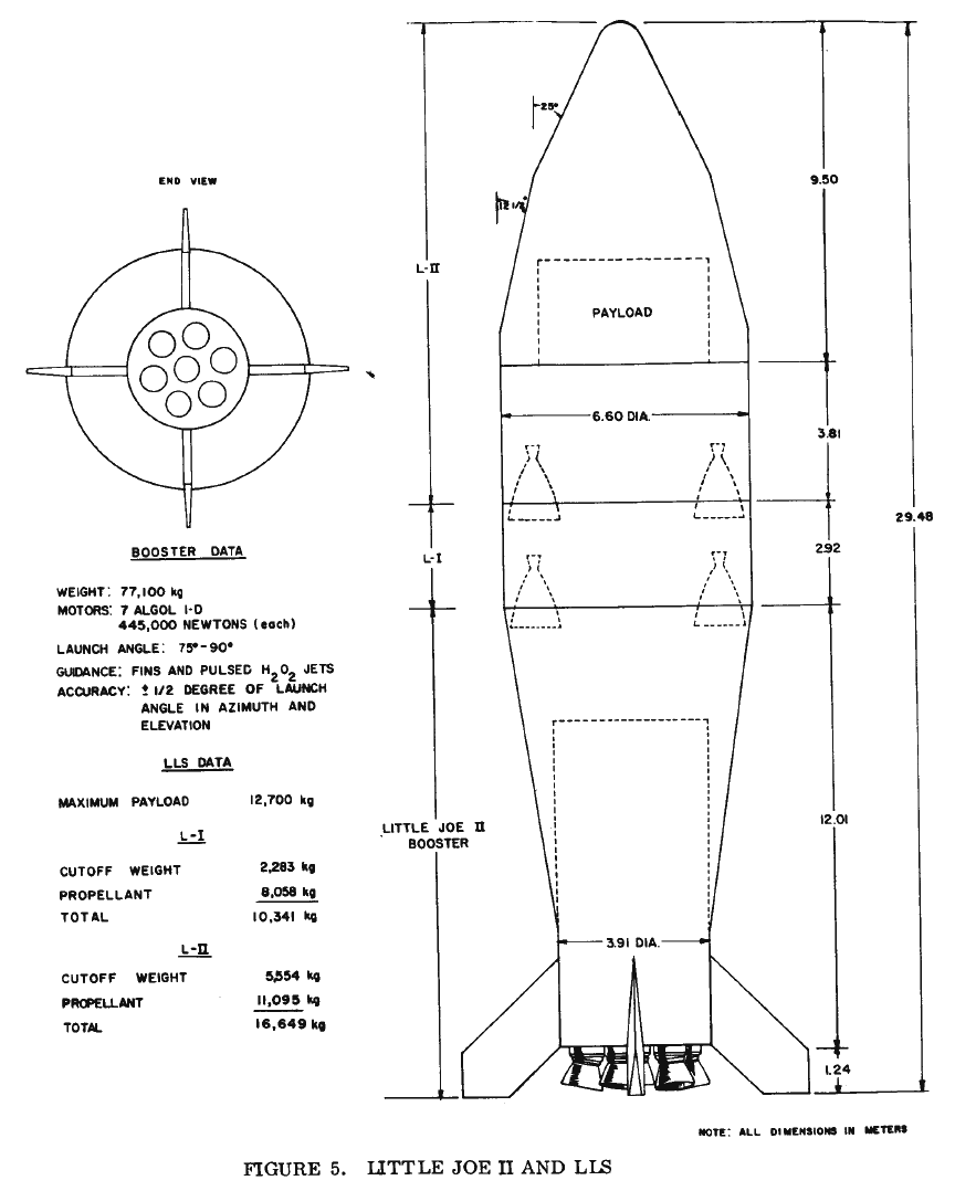 | Tom Beach collected several of these in the late 1970's and 1980's. They were extremely valauble in creating the Scale Data for American Spacemodeling, documenting all five Litte Joe-II's which flew. There are several NASA Little Joe-II reports and related files on the NASA Technical Reports Server (NTRS). To look for newly added files, or research other NASA reports use this link: http://ntrs.nasa.gov/search.jsp Below are links and info on several reports, and some GIF's extracted from the PDF files. Page numbers listed are for the PDF's, not the orginal report page numbers. | Navigation links for this page: