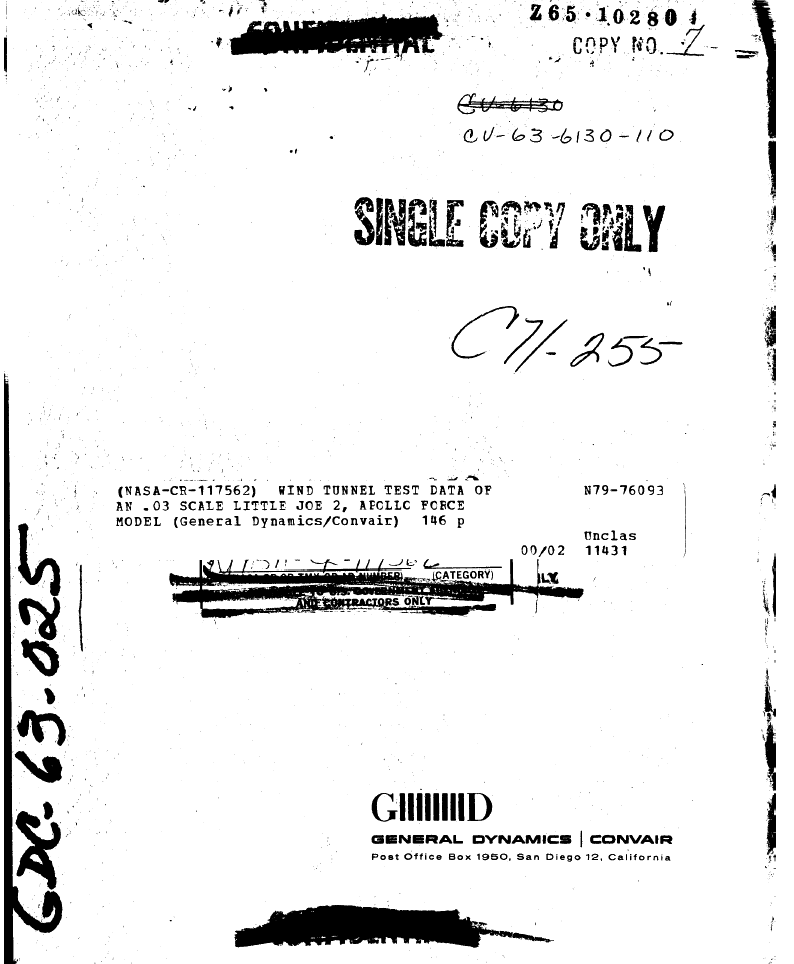 | of an .03 scale Little Joe II Generla Dynamics Convair GDC-63-025 Feb 19, 1963