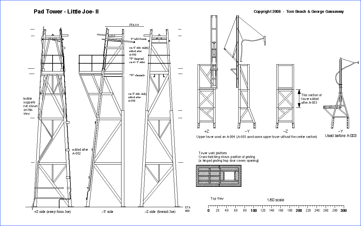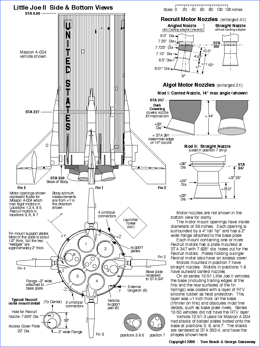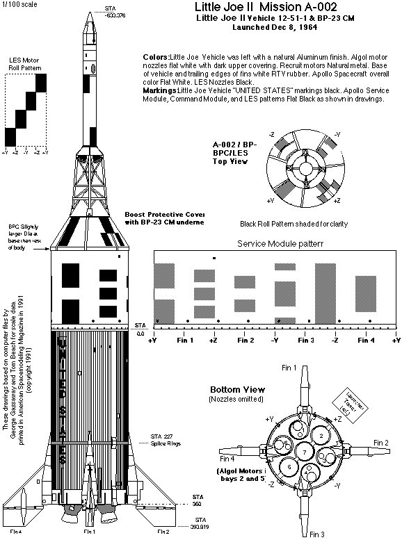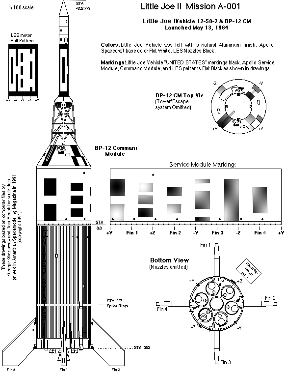 | by George Gassaway & Tom Beach The following Little Joe-II Drawings were mostly done by George. Some portions were done by Tom. The Pad Drawings were entirely Tom's. Most of these drawings were in the May/June and July/August 1991 issues of American Spacemodeling Magazine (The NAR's magazine name before Sport Rocketry). | Navigation links for this page: |