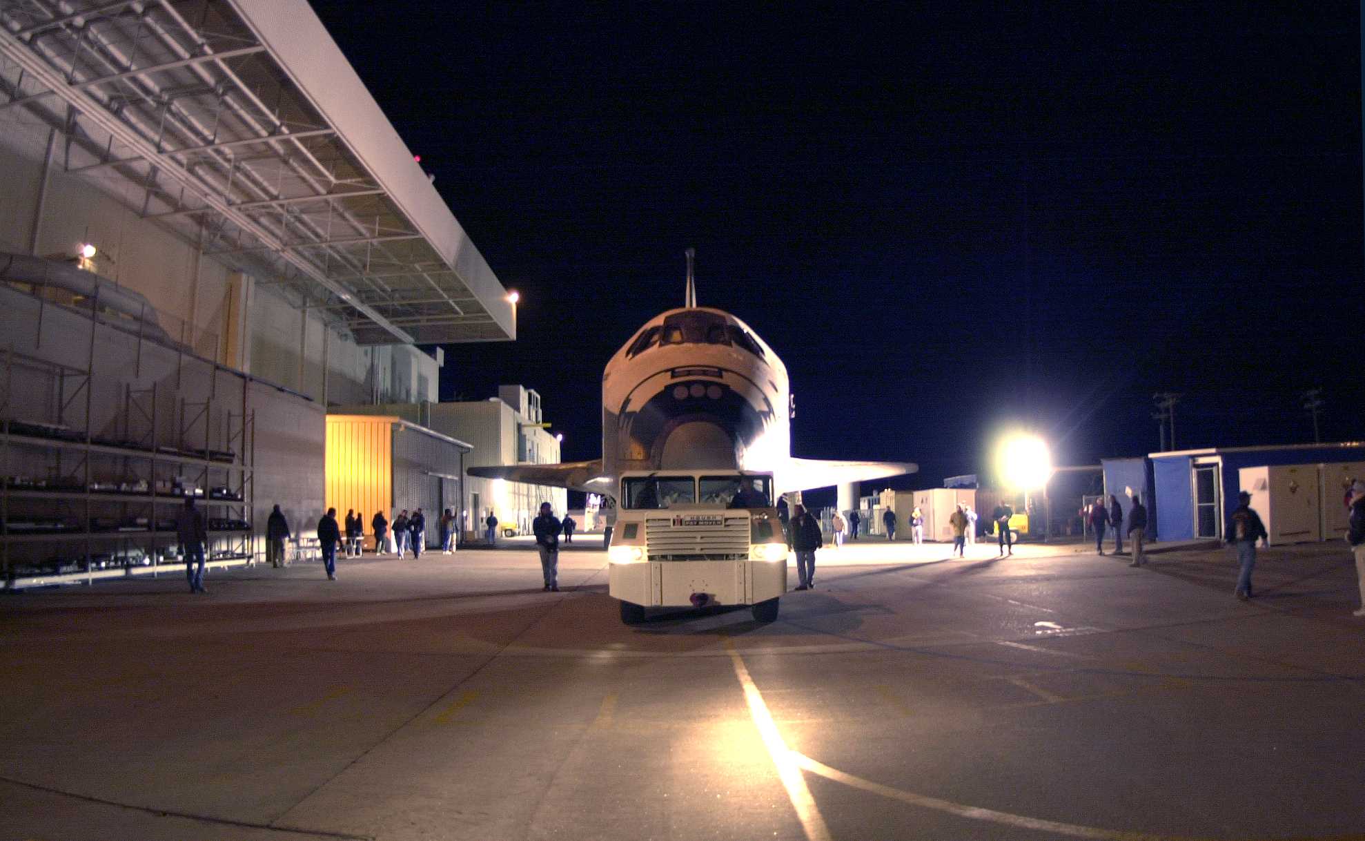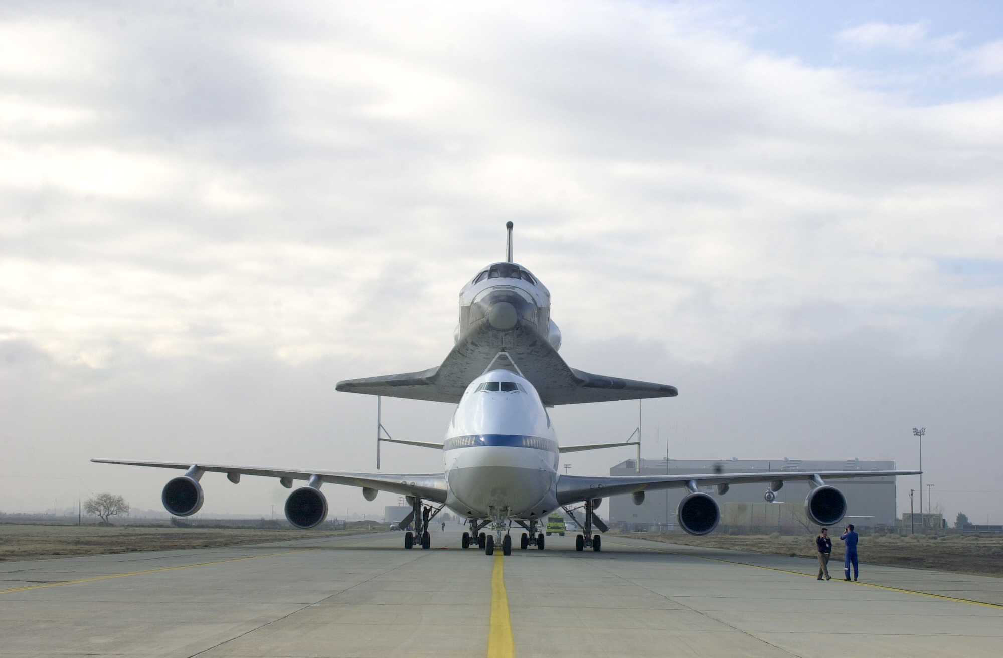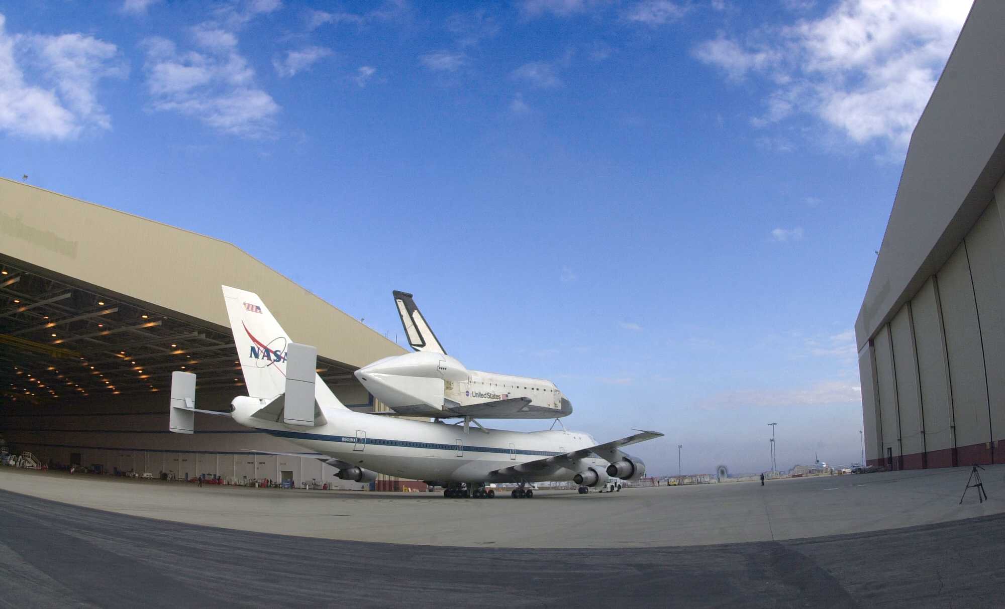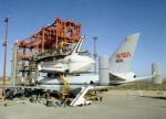 | | Moment of sep, without tailcone | Columbia was flown to KSC with some tiles not yet in place. Some other tiles simply fell off during the ferry flight. | ||