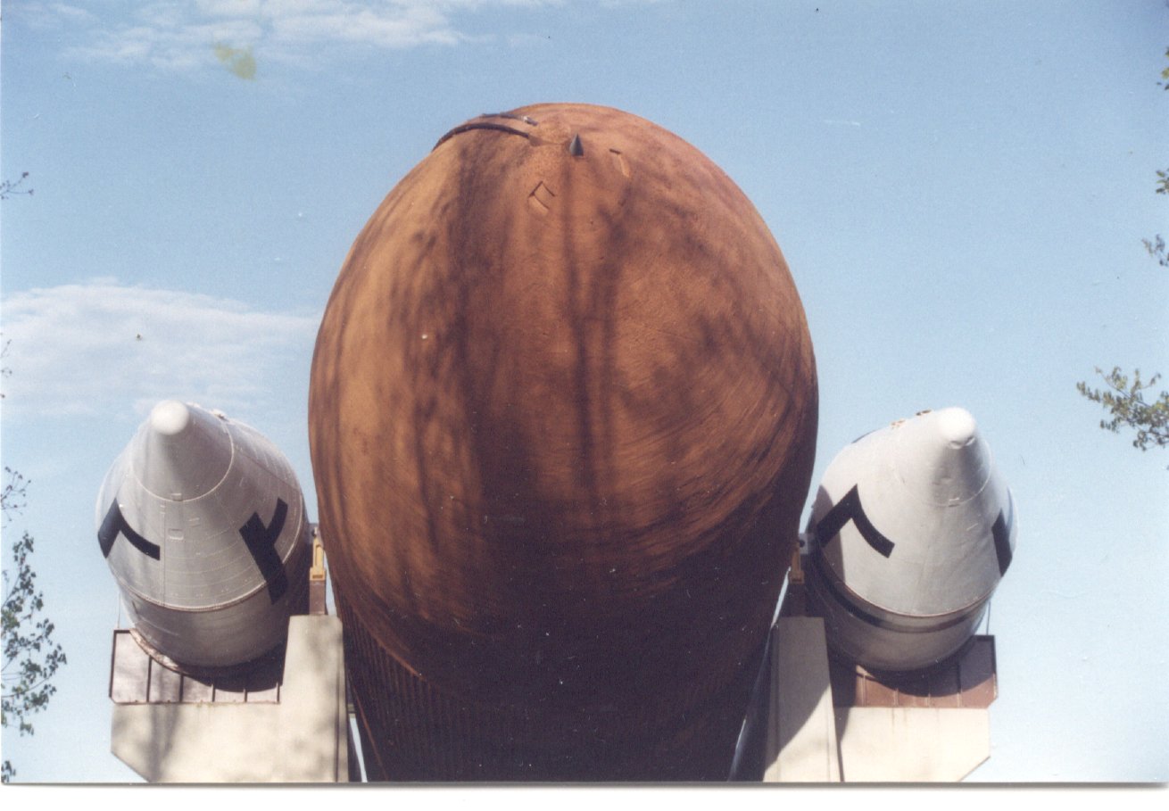 | No, that's REAL. STS-71, Atlantis, departing MIR, July 1995. Photo taken from a Soyuz. | | Columbia STS-35 on pad 39A at left, Discovery STS-41 on pad 39B at right. | From STS-91 Lite ET folder | |