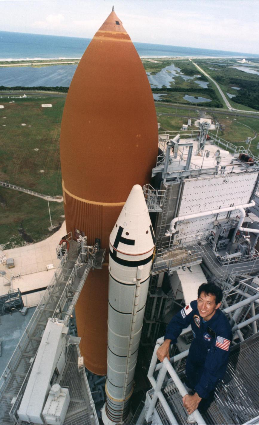| Crew: Robert L. Gibson (4), Commander Curtis L. Brown (1), Jr, Pilot Mark C. Lee (2), Payload Commander N. Jan Davis (2), Mission Specialist Jay Apt (2), Mission Specialist Mae C. Jemison (1), Mission Specialist Mamoru Mohri (1), Payload Specialist Primary payload: Japan's Spacelab-J |