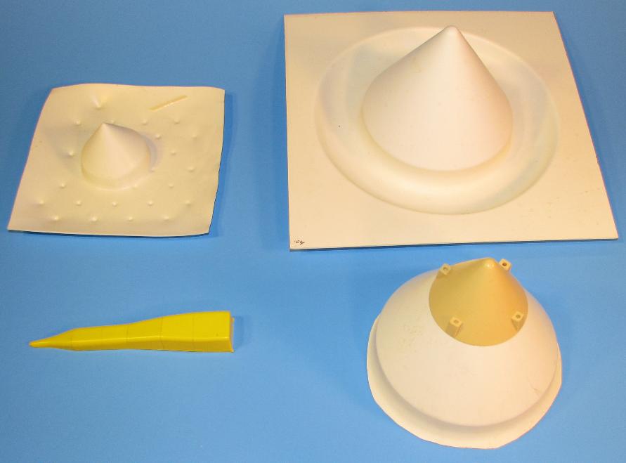 | Before reading this article, you may want to see the video made by Doug Pratt, of Pratt Hobbies, using the original automated CMR Vacu-forming machine. This is the old machine made by Howard Kuhn around 1970 or so, which made the old CMR nose cones and egg capsules, and now used by Doug for the same cones and egg capsules.