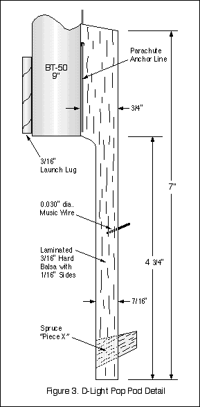 This glider needs to travel three feet up a 3/16-inch rod to flywell on an Estes D12. If your rod is only three feet long, tape therod to a tall stake in the ground so that the glider hangs down belowthe base of the rod and the glider pod has a full three feet oftravel. If you're using a D/T, remember to light it just beforelaunch and launch as soon as you light it!