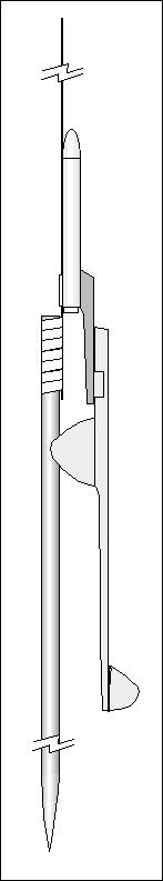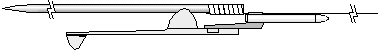 As shown in the figure, a thread runs from a music wire loop onthe underside of the flap, across the bottom of the fuselage, overthe D/T fuse where it enters the snuffer tube on the opposite side ofthe fuselage from the flap, and to a wire staple just above thesnuffer tube. When no D/T action is needed, the flap is just taped inthe flush position and no fuse is installed.