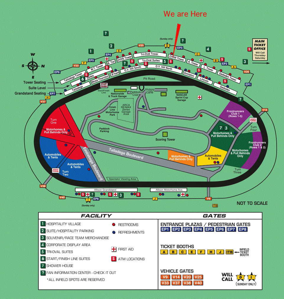 Out seats were here, at the O.V. North Hill "Tower" section. Those were about like having 40 yard line seats for a football game. |