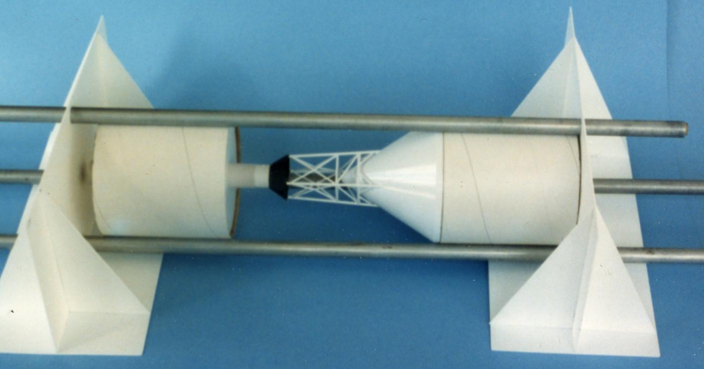 There was little use of casting due to not discovering the joys of Alumilite by then. The cast fairing translucent pieces on the system tunnel plate are polyester resin, Alumilite is lots better. When I later did a Peanut Scale modle at 1/100 scale, I made a lot of use of casting.