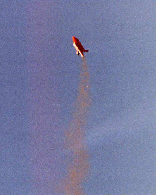 There was one wild boost, when an SRB aft attach point was not hooked up right in prepping, allowing the SRB to wobble on boost. The orbiter was purposely sepped early via R/C at burnout, and the Flight Computer programming made the ET ejection fire one second later, as planned. This "R/C Abort" allowed the ET and SRB's to all have time to deploy their chutes, so the whole model landed safely.