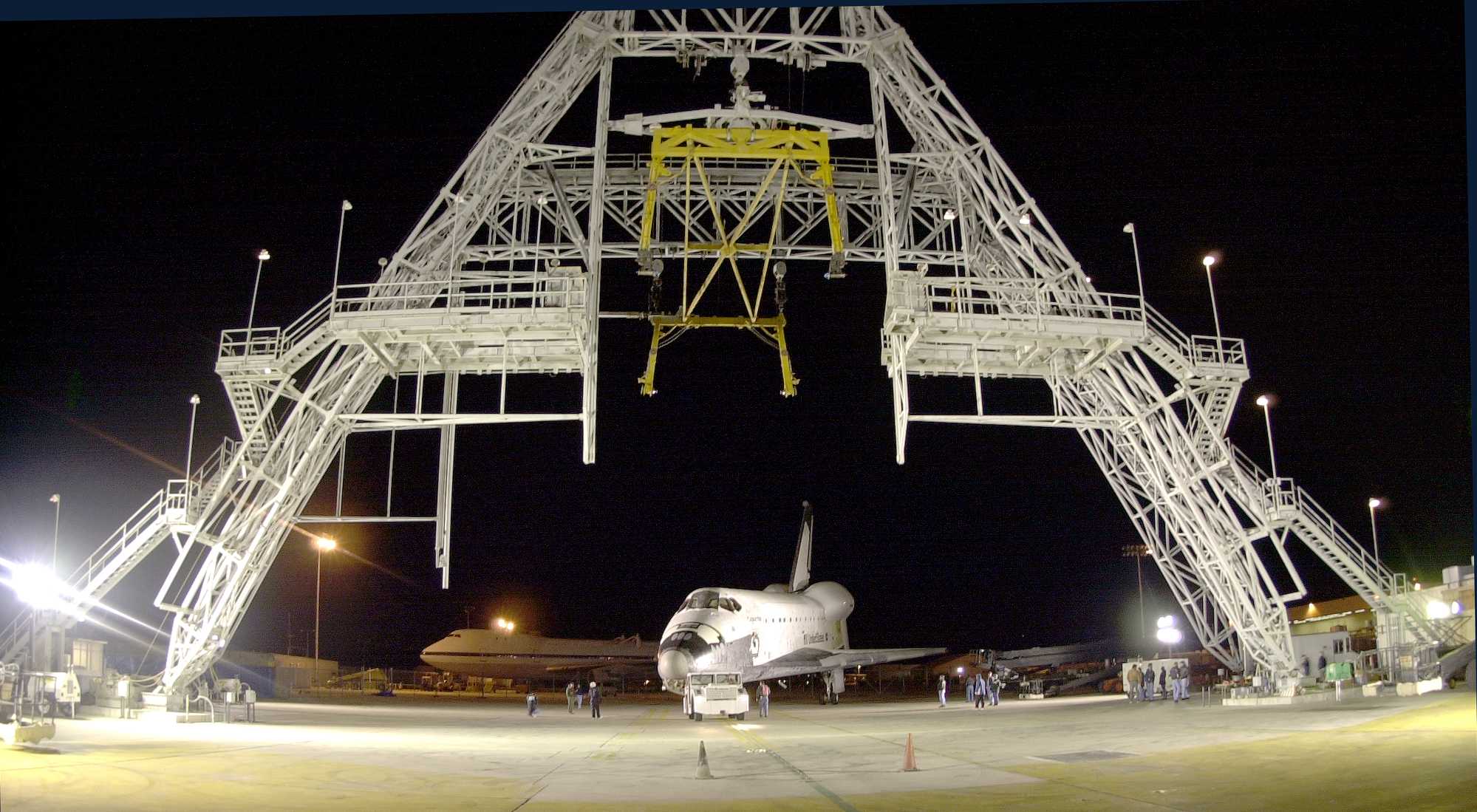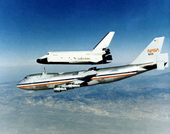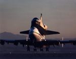 | | Moment of sep, without tailcone | Columbia was flown to KSC with some tiles not yet in place. Some other tiles simply fell off during the ferry flight. | ||