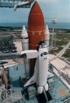 | STS-49 As always there are minor differences on ET's and even SRB's. Particularly the placement and use of insta-foam (lighter color orange or even yellow) on portions of the ET and even SRB's Also, some details of the same mission as-seen on rollout are different by the time of liftoff. Some tiles are left out for servicing work on the pad, including opening and closing of the bay doors. | 15S92-34865_STS-49.jpg | Endeavour_2_m.jpg | Endeavour_2.jpg |