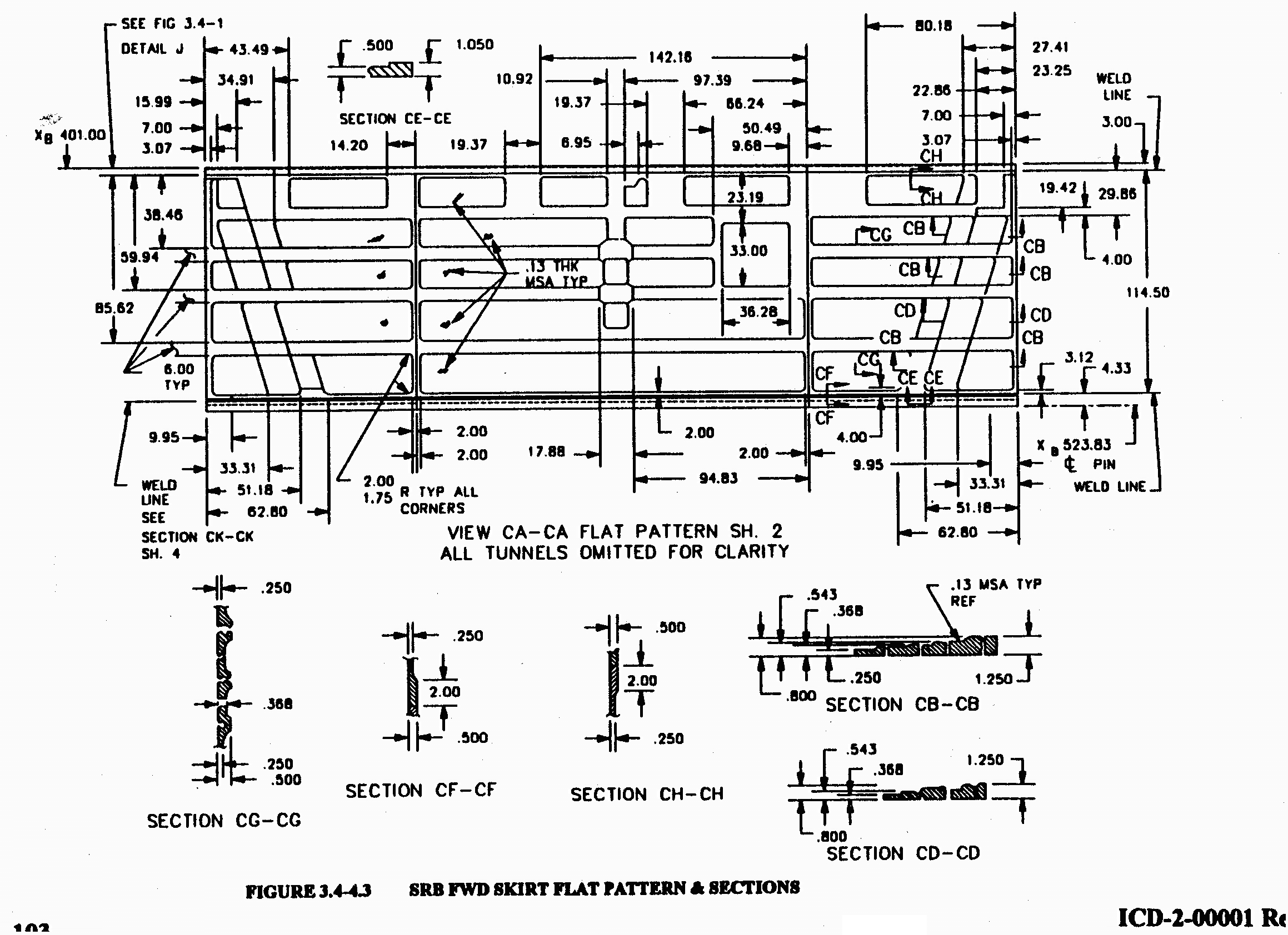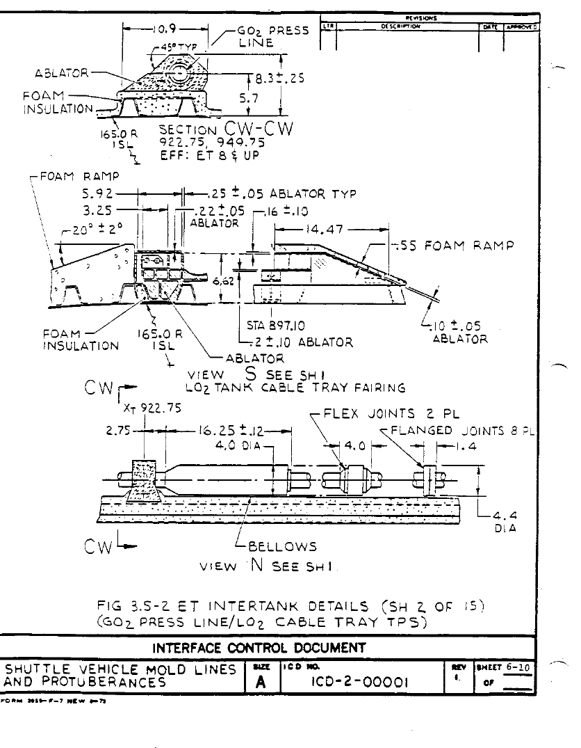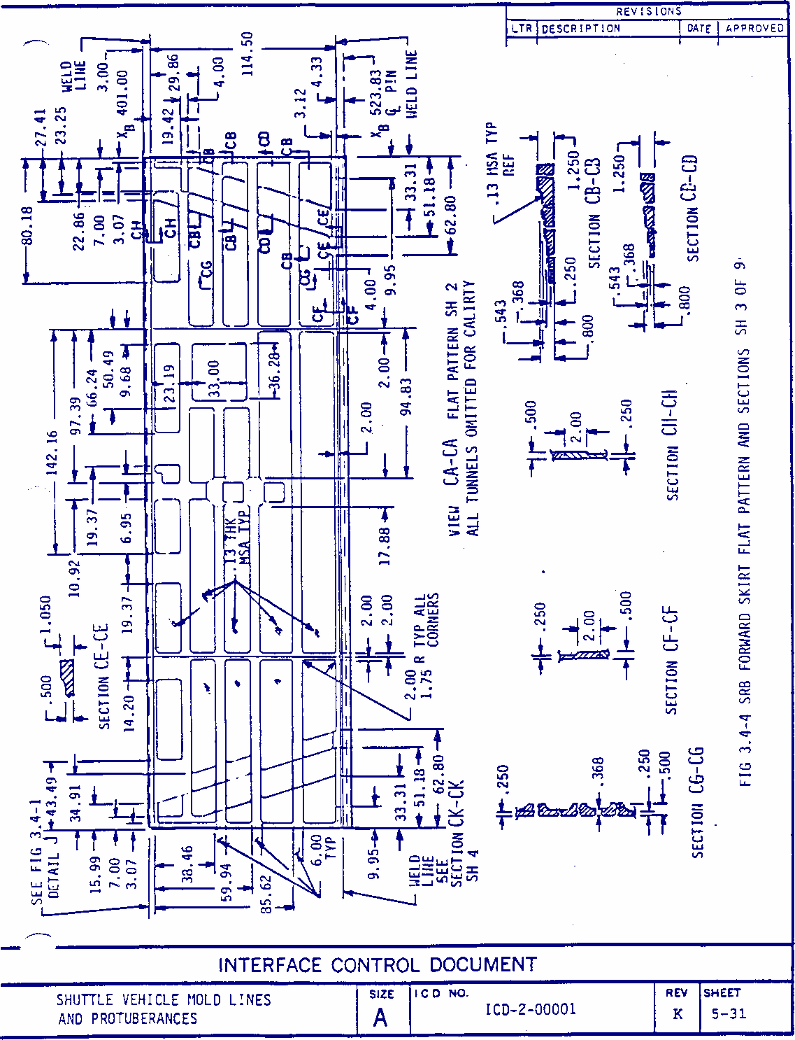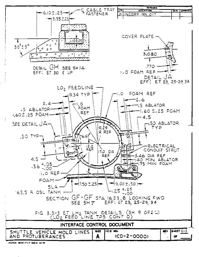 | ICD stands for Interface Control Document. It defines the external surface of a launch vehicle. Jimmy Williams obtained an ICD with a great deal of information on the shuttle ET and SRB's. Most of the drawings here are scans from that ICD. There are still many pages from that ICD which have not been scanned yet. Most of these are from ICD-2-00001 "Shuttle Vehicle Mold Lines and Protuberances" 7/31/91 A few other pages are from a Rockwell ICD defining portions of the orbiter. |
