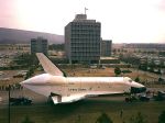 | The vibration test building was originally built for the Saturn-V. | Enterprise lowered to the ET. Other vibration tests included SRB's with inert propellant, and SRB's without. This was without any SRB's. | |||