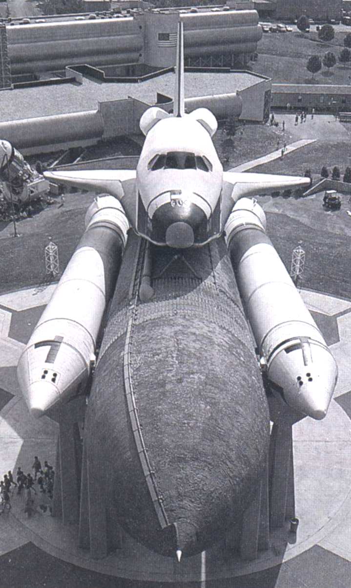 | No, that's REAL. STS-71, Atlantis, departing MIR, July 1995. Photo taken from a Soyuz. | | Columbia STS-35 on pad 39A at left, Discovery STS-41 on pad 39B at right. | From STS-91 Lite ET folder | |